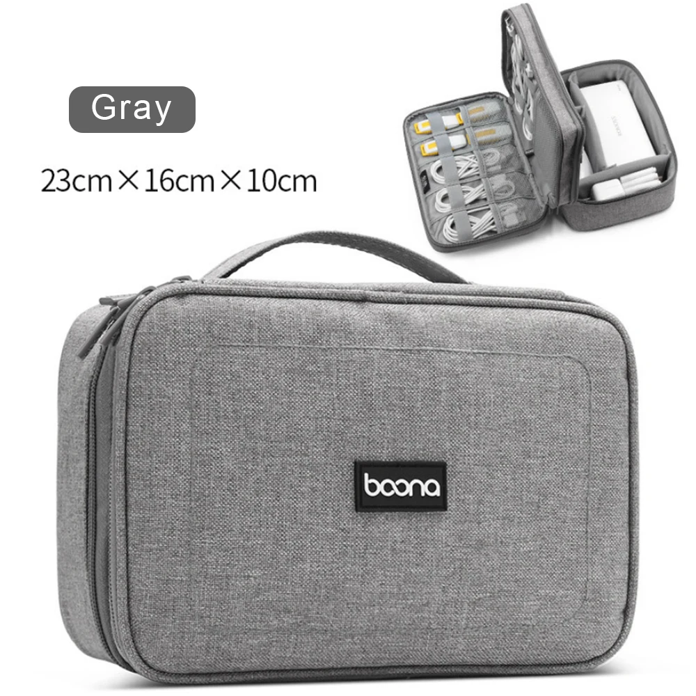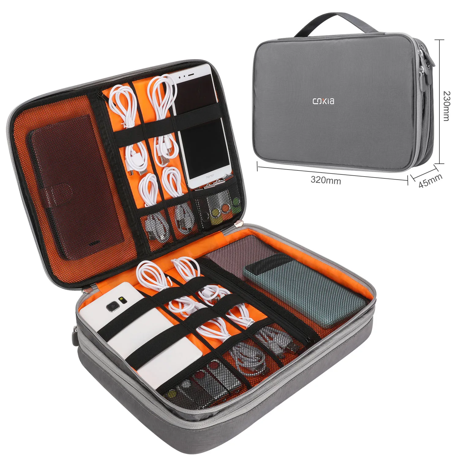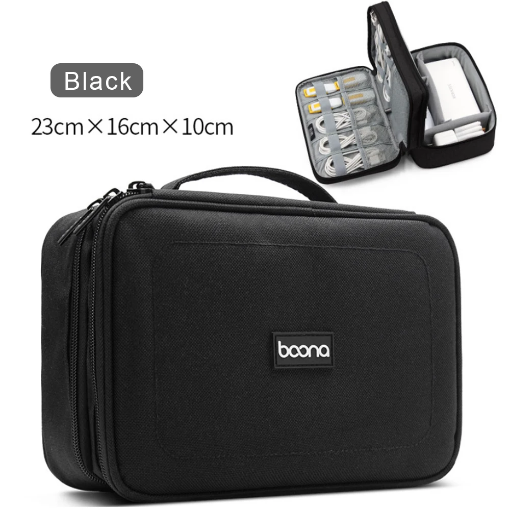 Size: 320*230*45mm.Perfect size of this cable organizer bag easily fits into your briefcase, luggage and backpack.